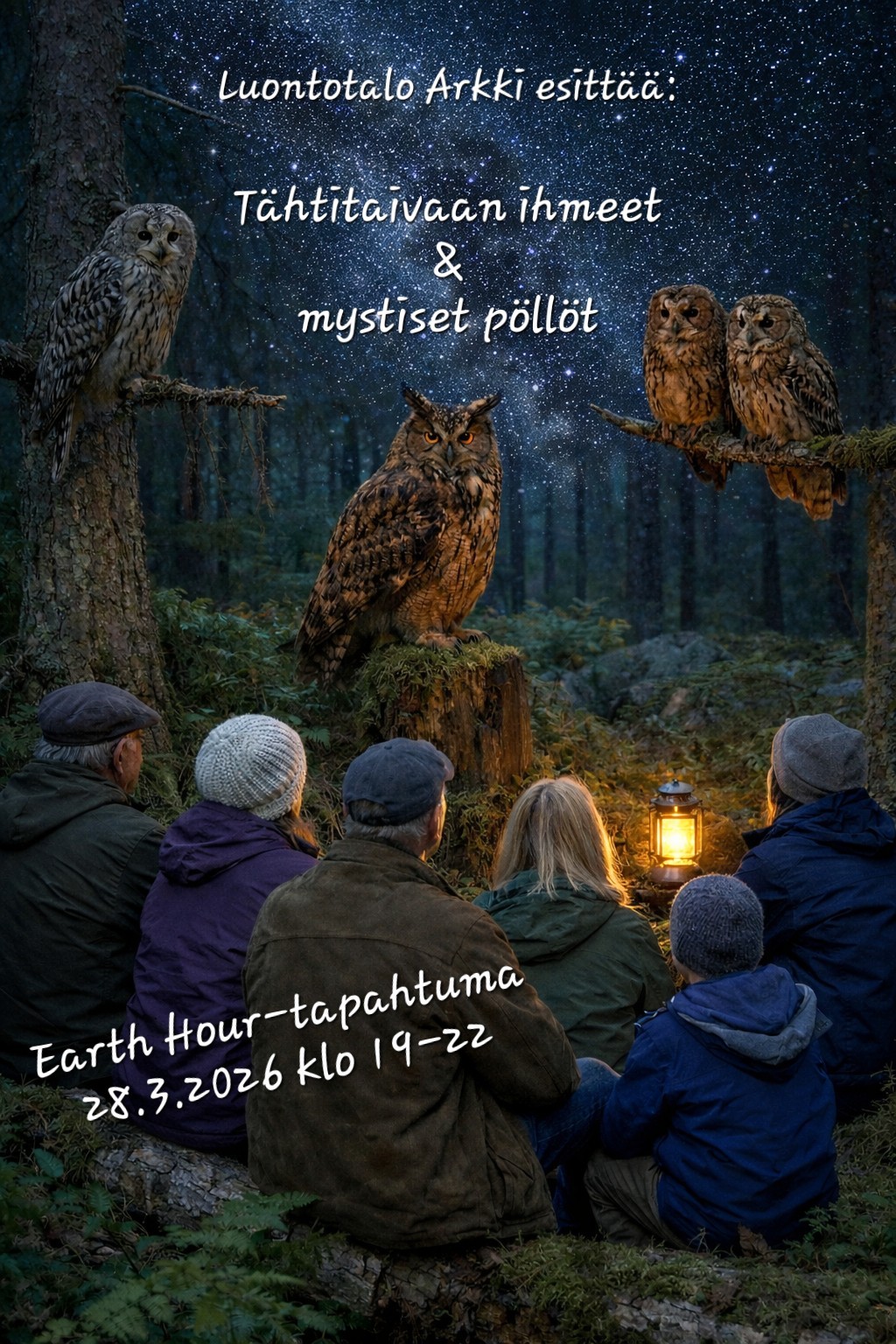 Tule mukaan, kun Luontotalo Arkki kutsuu Sinut tunnelmoimaan erilaisen Earth Hour-elämyksen pariin kevättalven hämärään lauantaina 28.3.2026.